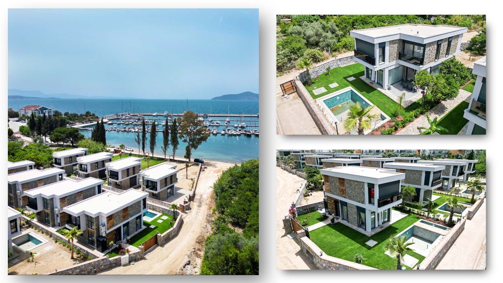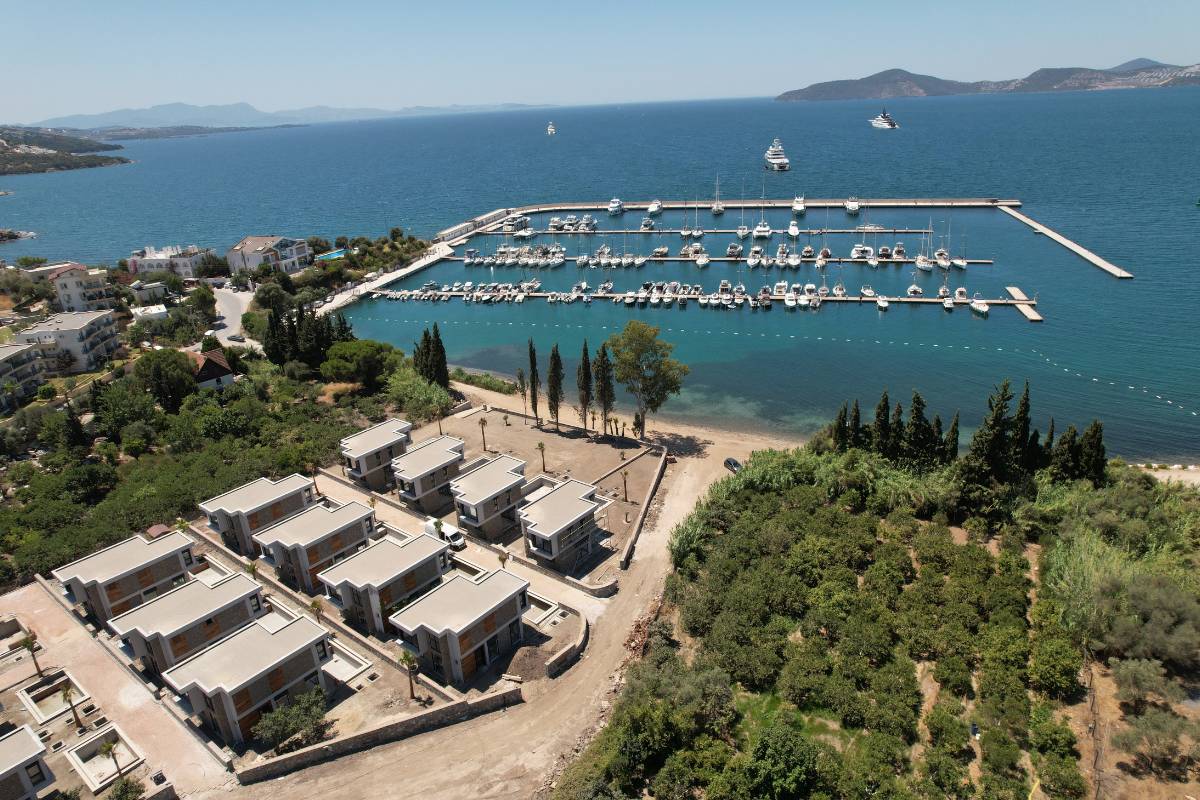 Projemiz Güllük Yat Limanı içerisinde, Portakal ve Zeytin ağaçları arasında, deniz kenarında özel plajı ve konum itibariyle eşi bulunmaz bir alanda yer alıyor.