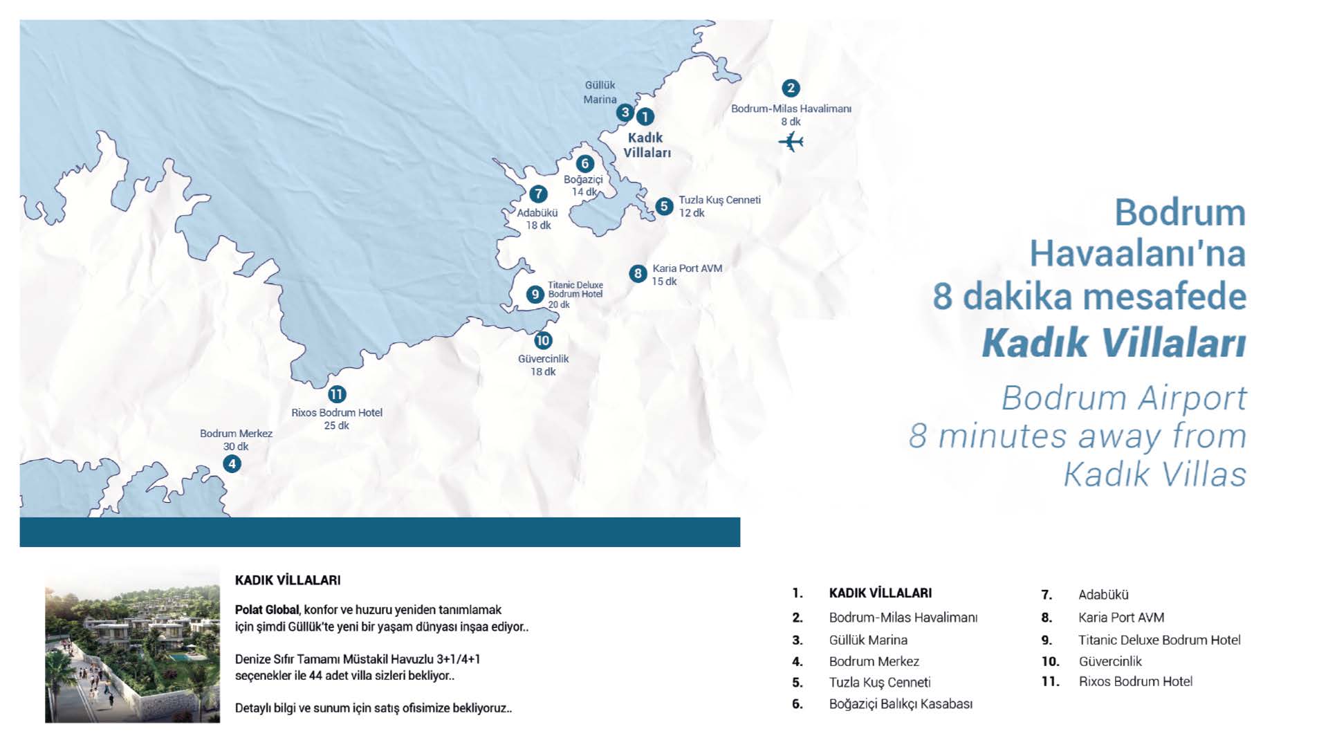 Projemiz Güllük Yat Limanı içerisinde, Portakal ve Zeytin ağaçları arasında, deniz kenarında özel plajı ve konum itibarıyla eşi bulunmaz bir alanda yer almaktadır.